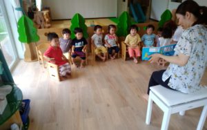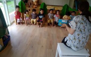 リトミックです。みんな一緒に『お願いします!』のご挨拶